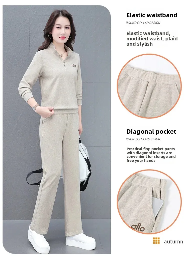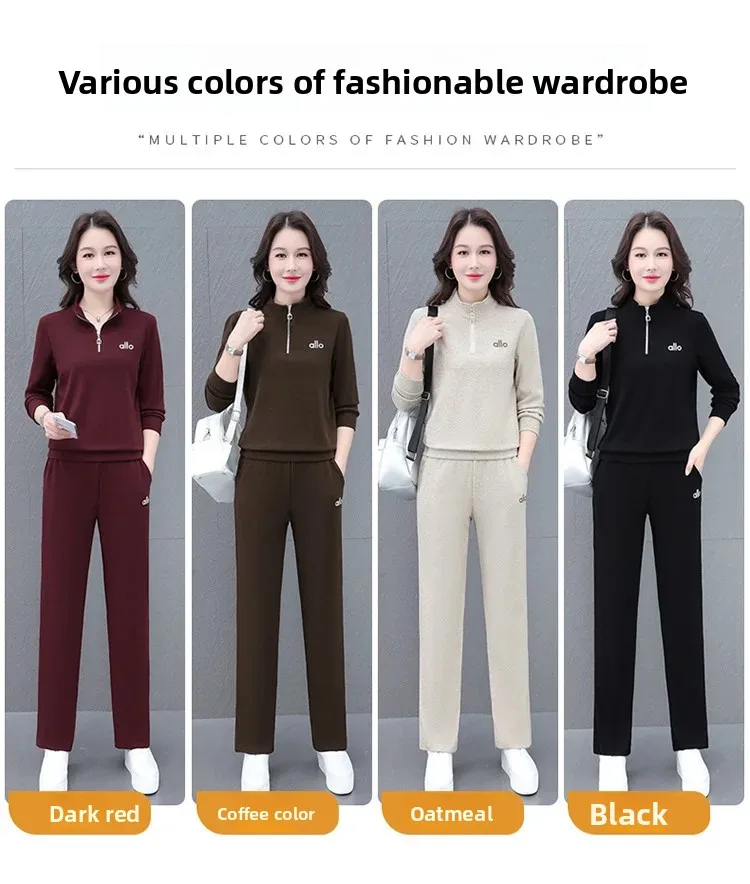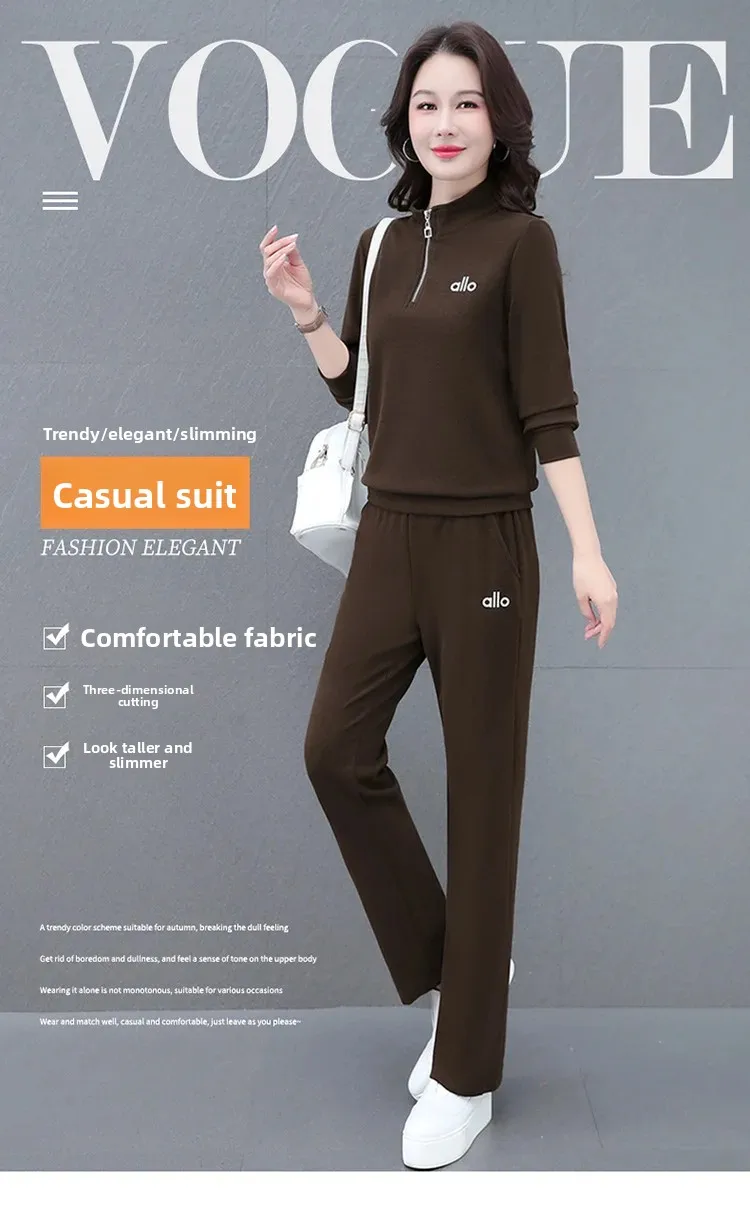Casual Fashionable Sportswear Set for Women Middle-Aged Large Size Two-Piece Ensemble Spring Autumn New 2025 Stylish Mom Outfit